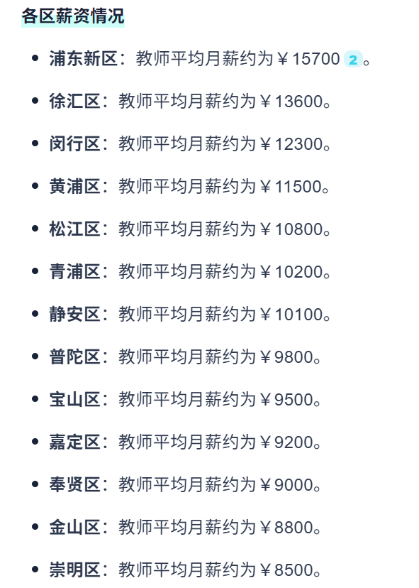 教师薪资受区域财政限制,顶尖教师慢慢流向浦东、闵行等高投入区域。