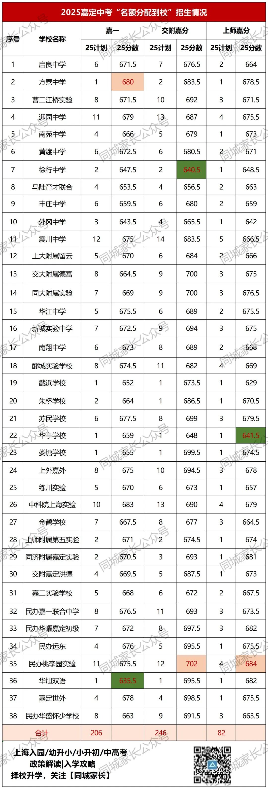 上师嘉分,名额分配到校招生计划为82人,覆盖嘉定区38所初中。