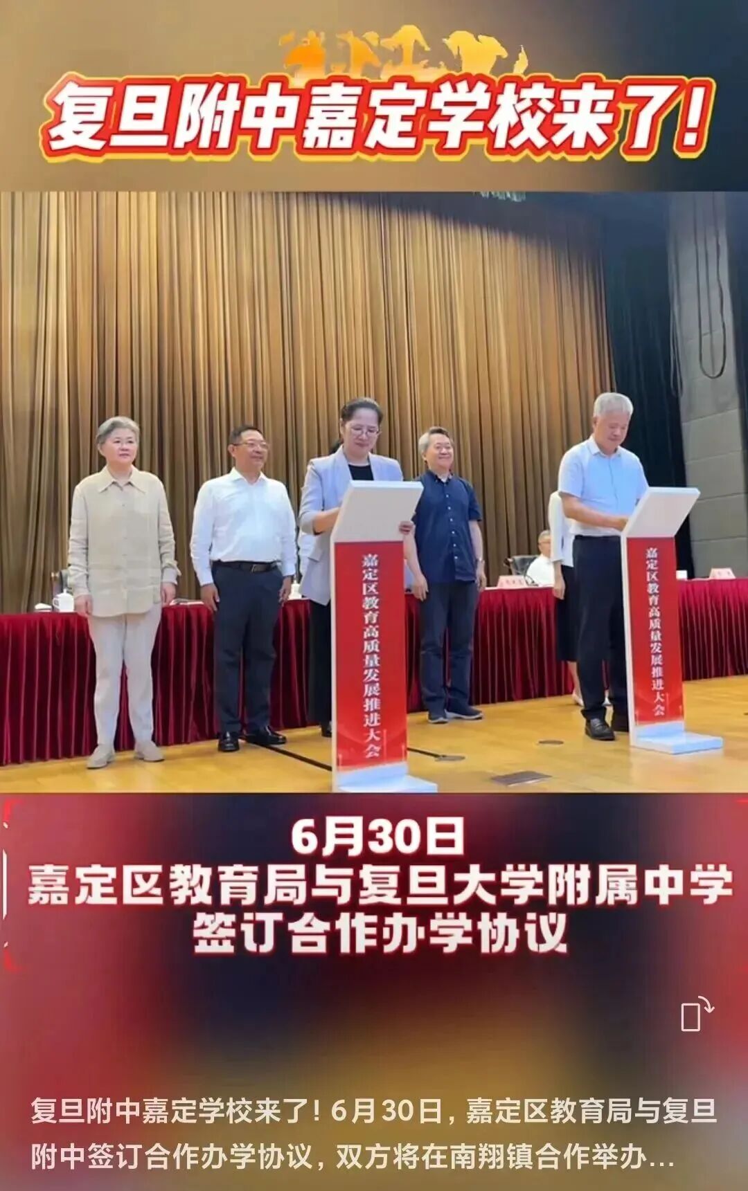 嘉定区这两年在高中建设方面力度也是空前的,除了上师嘉定已经借址办学外。今年,嘉定区教育局还官宣与复旦大学附属中学签订合作办学协议,双方将在南翔镇合作举办复旦附中嘉定分校!