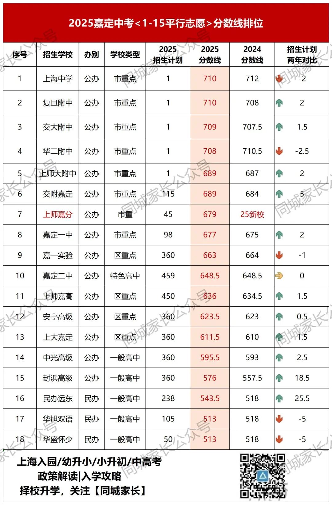 接下来,我们一起看下嘉定区高中布局及平行志愿投档线情况:
