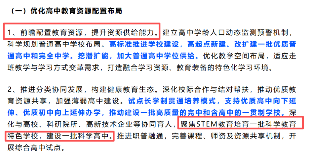 推进教育科技人才的发展 上海市教委最新发文 将这样实施…… 对于推进教育科技人才的发展,近日,上海市教委印发《上海市普通高中高质量发展实施方案》。 优化高中教育资源配置布局中提及:将深化与高校、科研院所、高新技术企业等协同育人,聚焦STEM教育培育一批科学教育特色学校,建设一批科学高中。