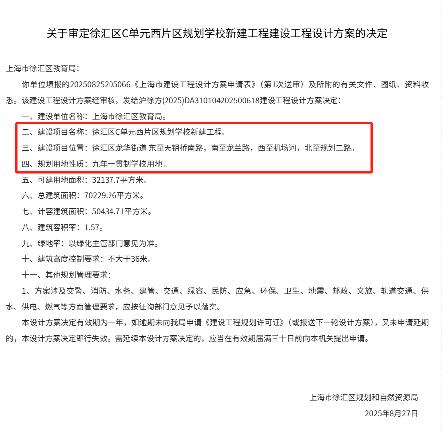 近日,徐汇区政府发布了关于审定徐汇区C单元西片区规划学校新建工程建设工程设计方案的决定。该新建工程项目,是徐汇教育的重点项目,根据此前城市更新与工程设计研究所发布的项目预览图,依稀可以看到图片中的学校名称为:中科院上海徐汇实验学校。 2025年年初,上海市建筑科学研究有限公司城市更新与工程设计研究所(简称“上海建科院更新所”)承接的徐汇区C单元西片区规划新建学校项目正式启动,这一项目将深度融合联合国倡导的STEM教育新模式,通过精心设计科学展厅、科学信息中心、兴趣活动室、中外科学家展示廊等科学相关设施,致力于打造一所集泛生态化、艺术性、科技性于一体的9年一贯制学校,成为青少年STEM教育领域中具有示范和引领作用的标杆学校。中科院徐汇实验学校(暂名)