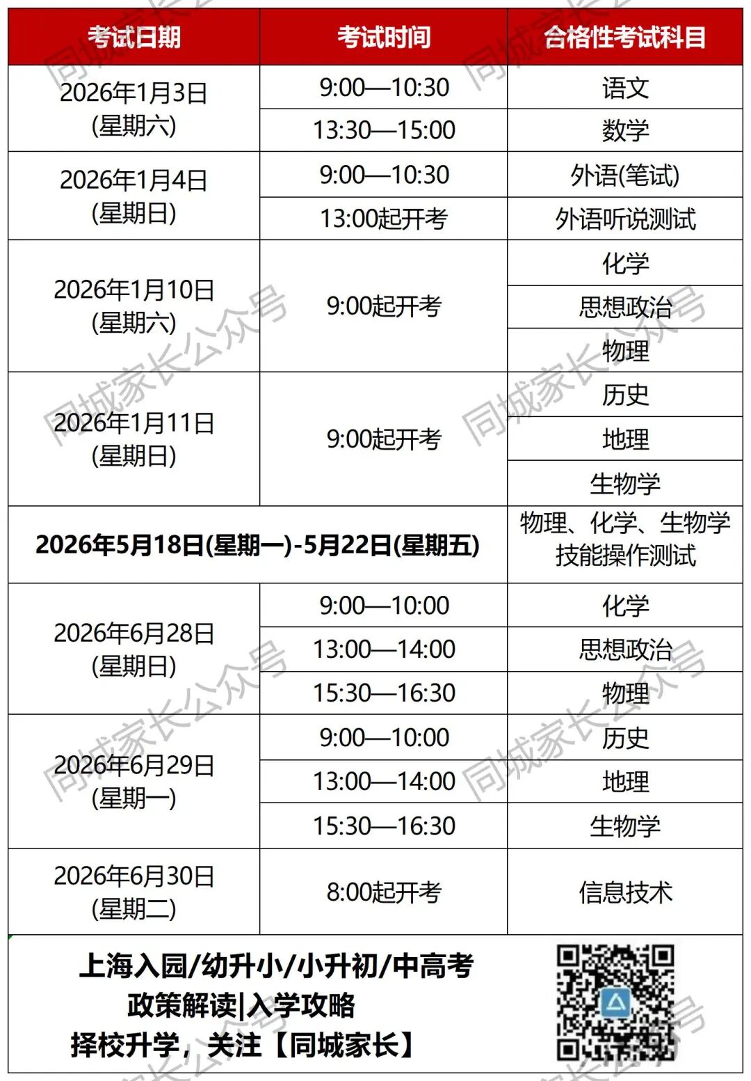 定了!2026上海高中合格考和等级考时间出炉!