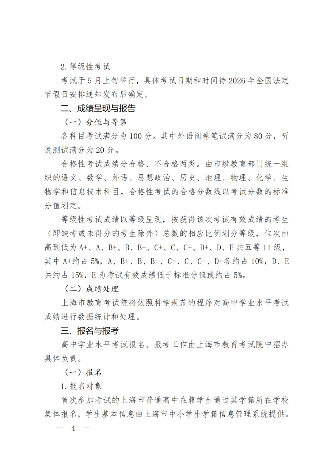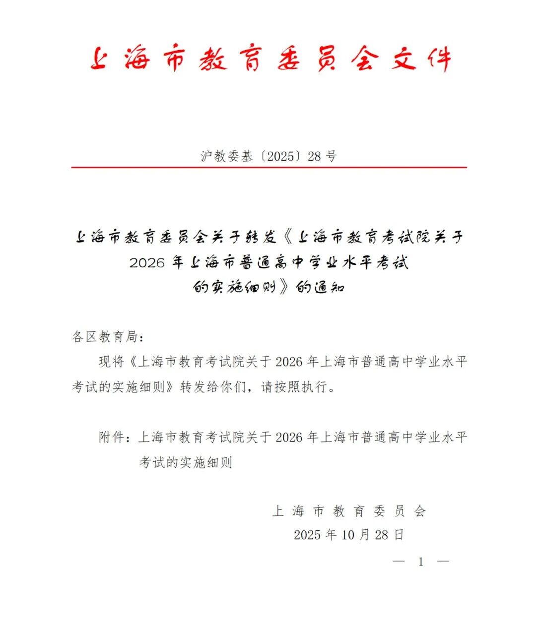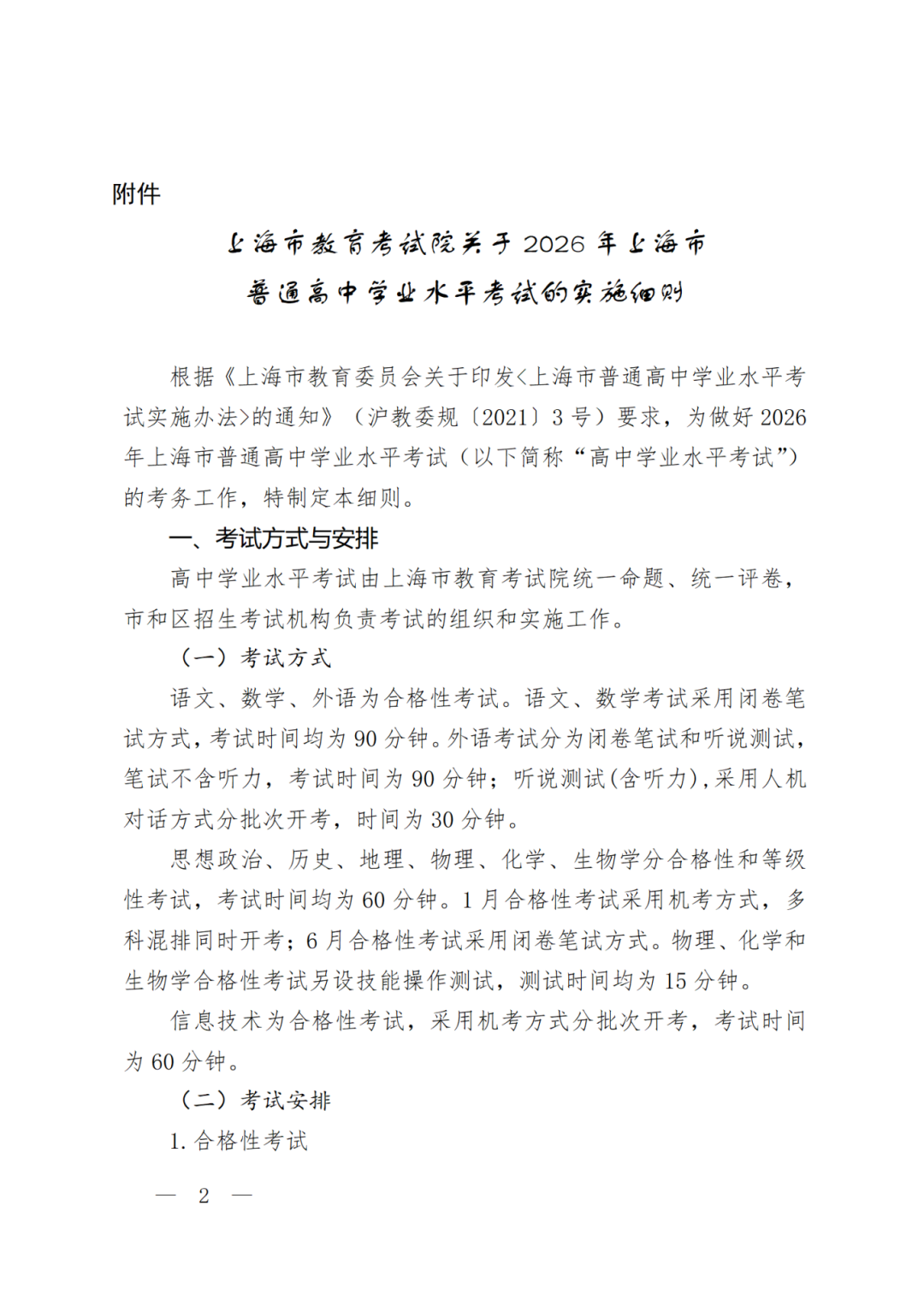 近日,市教委在官网公布《上海市教育考试院关于2026年上海市普通高中学业水平考试实施细则》发布。