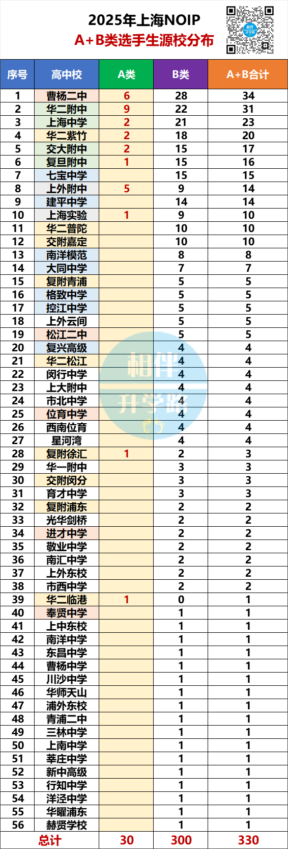 最亮眼的是:在A+B类总人数上,曹二今年以34人霸榜,甚至超越了华二!曹二这几年卯足了劲发展信奥,这次登顶,绝非偶然。