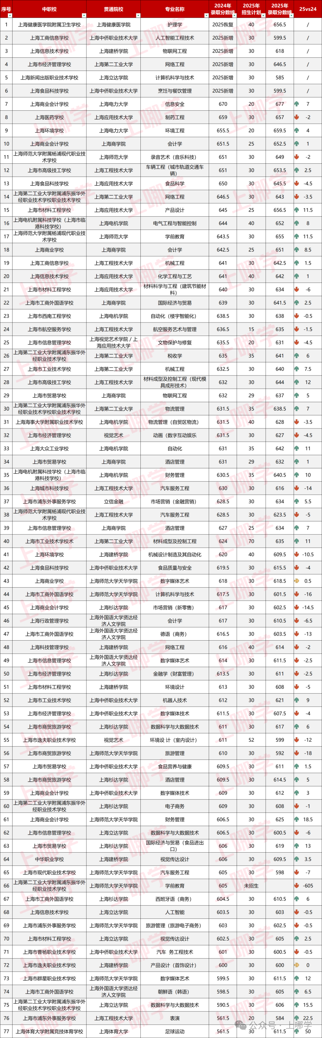 好消息!2026年上海中考将新增16个中本贯通专业!已有的77个中本贯通专业,录取最低分大多超600分!
