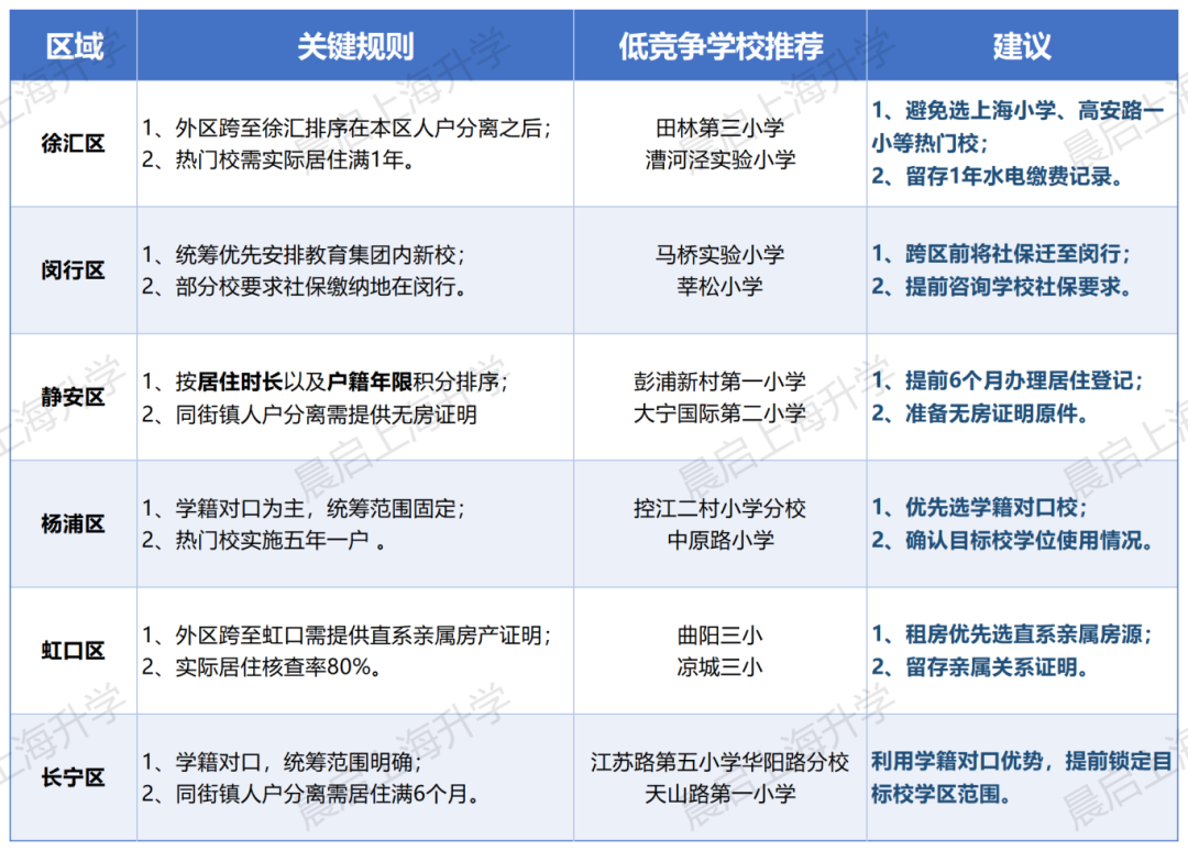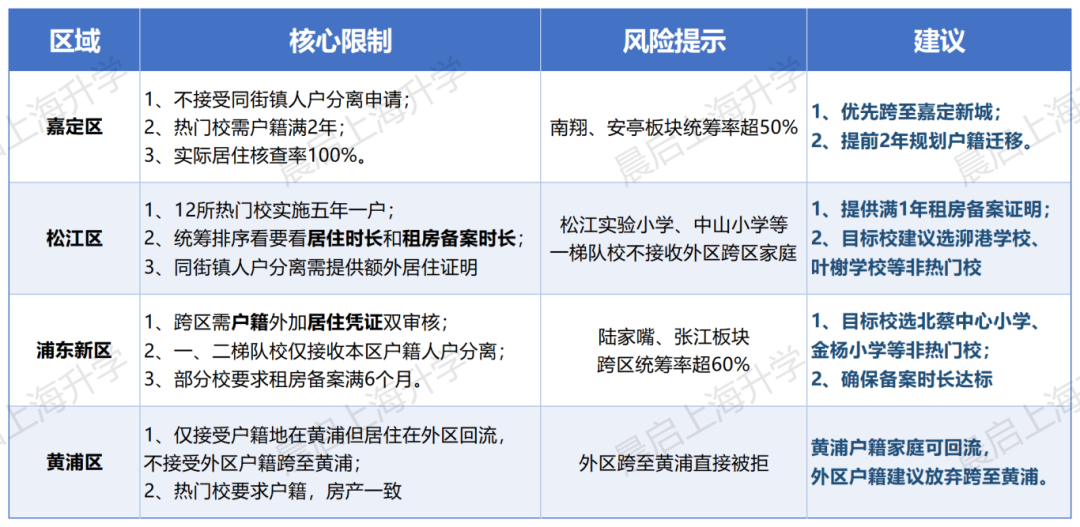 以上就是上海幼升小阶段,沪籍人户分离家庭需要关注的政策重点以及各个区的情况。