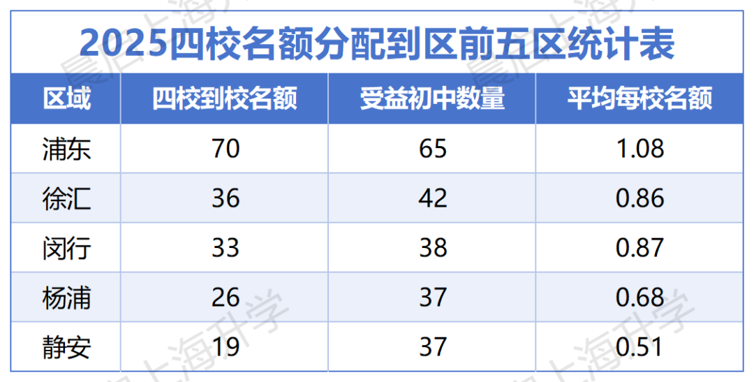 但是从数据的统计和对比来看,今年受益于名额分配到校的政策,像浦东和黄浦这样的教育大区,事实上获得了比较多的名额,再细分到了各个学校,最终结果就是,某种程度上打破了只要名校学生才能进四校的说法。