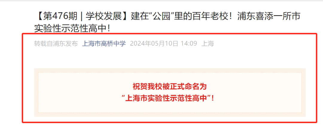 根据官方消息,高桥中学新校即将新建,相信未来配套更加完善后,高考出口会更加好,一定有望成为名副其实的市重,我们拭目以待……