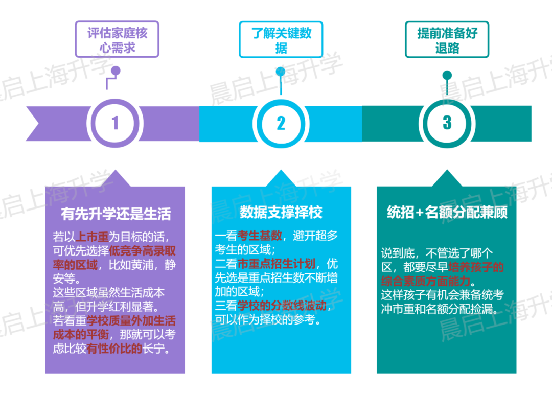 若以上市重为目标的话,可优先选择低竞争高录取率的区域,比如黄浦,静安等;若看重学校质量外加生活成本的平衡,那就可以考虑比较有性价比的长宁。