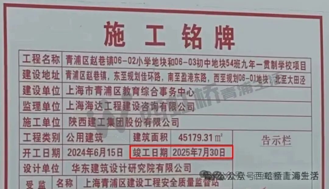 另外,大家关注的赵巷镇06-02小学地块和06-03初中地块,54班九年一贯制学校项目预计7月底竣工。