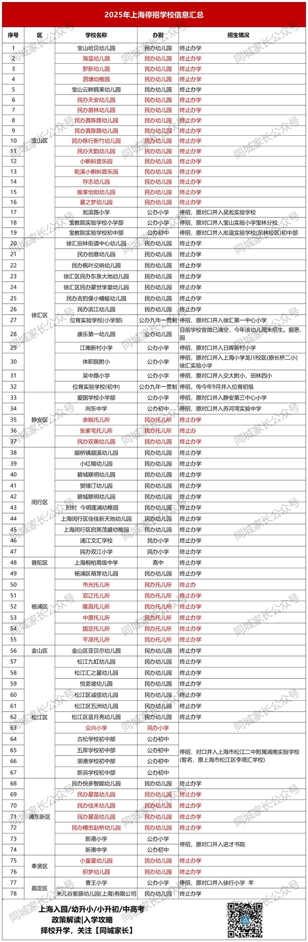 终止办学!上海又一区3所学校关停!今年停办、停招78所,涉及全市11区,还有34所新建校,52所更名......