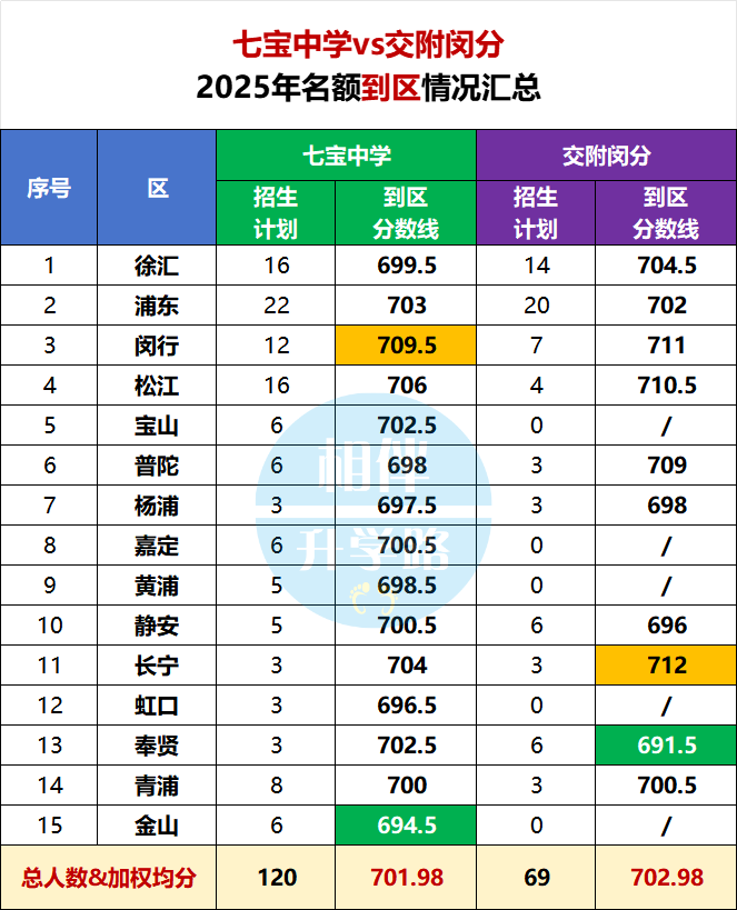 徐汇区:交闵704.5分>七宝699.5分; 松江区:交闵710.5分>七宝706分; 普陀区:交闵709分>七宝698分; 清北复交——能看出培尖能力;生源争夺,谁更挑剔?