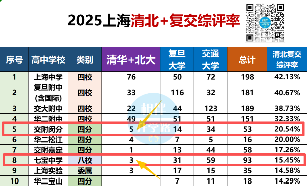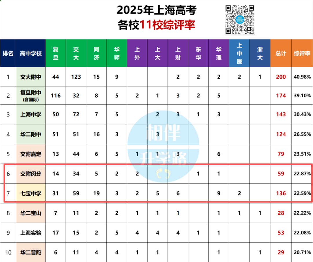 七宝虽然总人数远超交闵,复旦综评录取是交闵的两倍多,但被庞大的分母一稀释,比率自然就下来了。