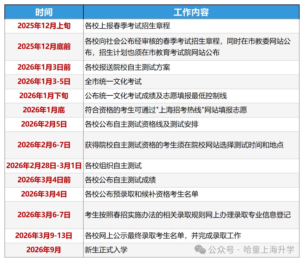 2026上海春考时间安排表