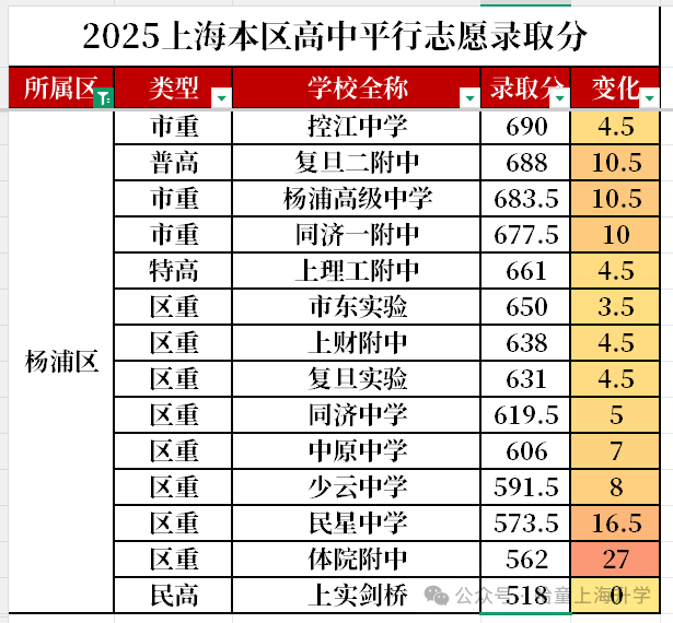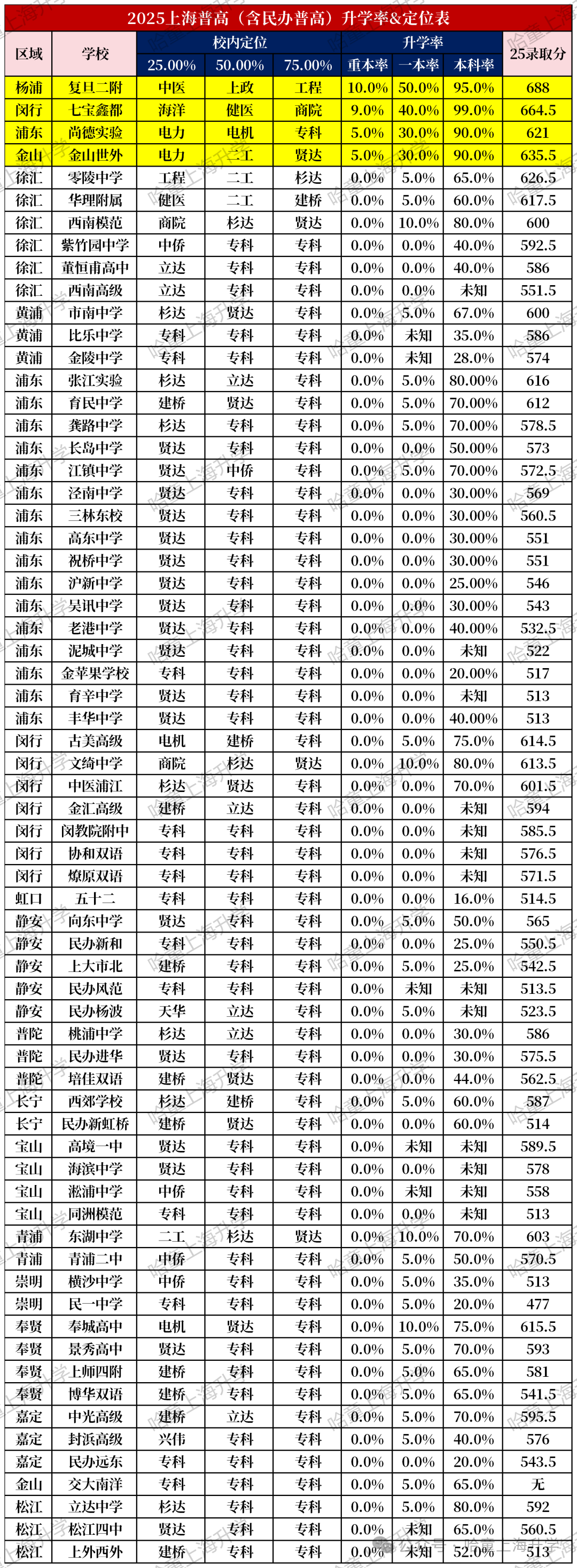 咱整理了上海一般高中的升学率定位表: