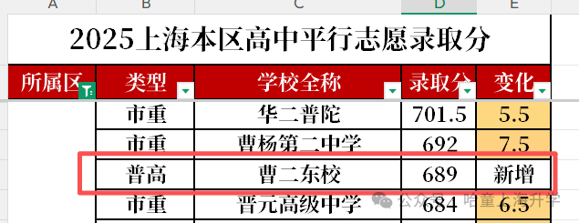 就拿曹二东校来说,今年才第一年招生,录取分就去到689分了,比前文的复旦二附校还高。