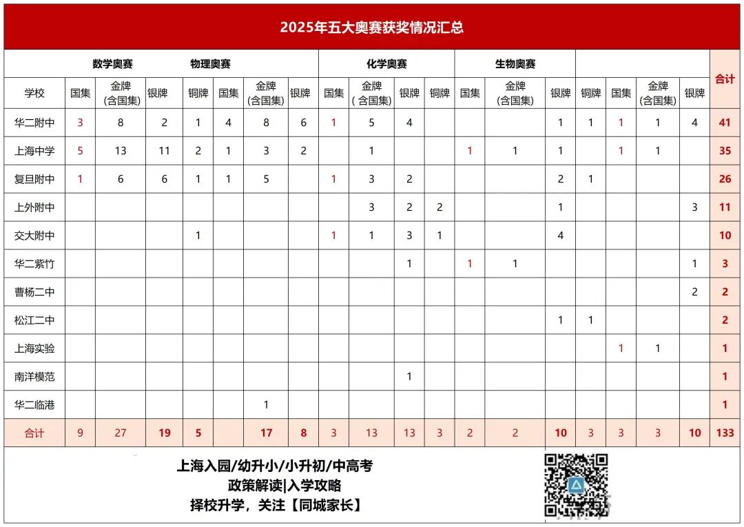五大学科国集队名单出炉!沪23人有望保送清北!上中、华二、曹二等11所高中133人获奖......