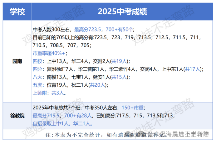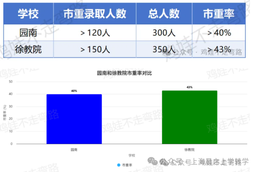 相比之下徐教院的生源起点要比园南中学低,园南中学的生源主要来自园南小学,部分来自徐汇实验小学,这两所学校在徐汇区都能排得上梯队。