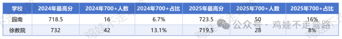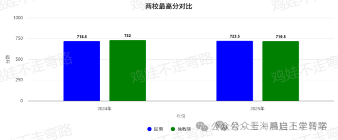 总的来看,园南中学在高分段占据优势,这也就意味着,校内学生存在生源断层的现象,而徐教院则是各个分段均衡。