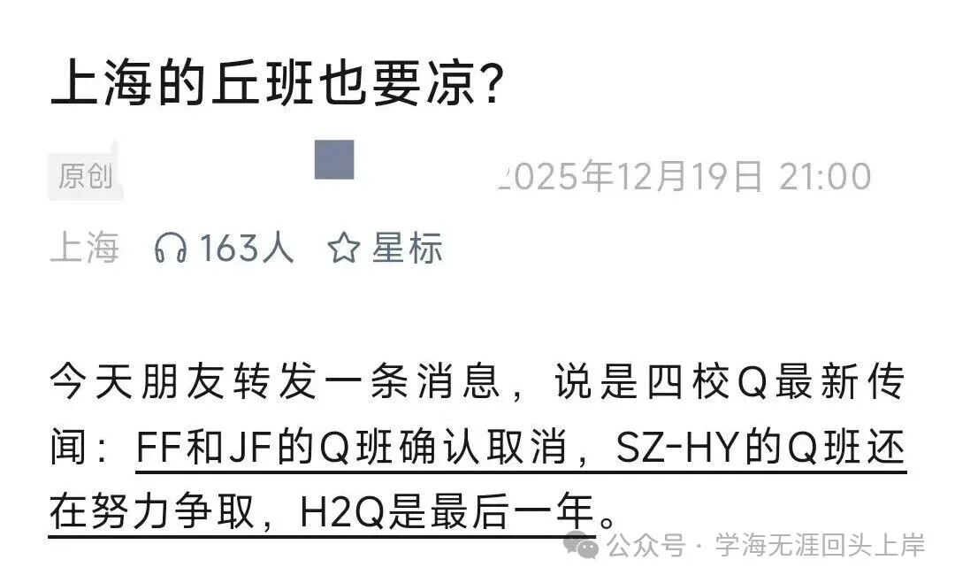 昨天早上,群里家长转发了一则关于“Q班”的消息,我立刻建议撤回。有位机构负责人,孩子以前也在附中就读,后来把孩子送到英国一所偏僻的高中,连信号都不太稳定。但他说,这样才好——正是一个能静心读书的地方,...