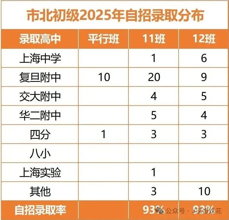 2025年中考市北初级目前能统计到的自招数据如下: