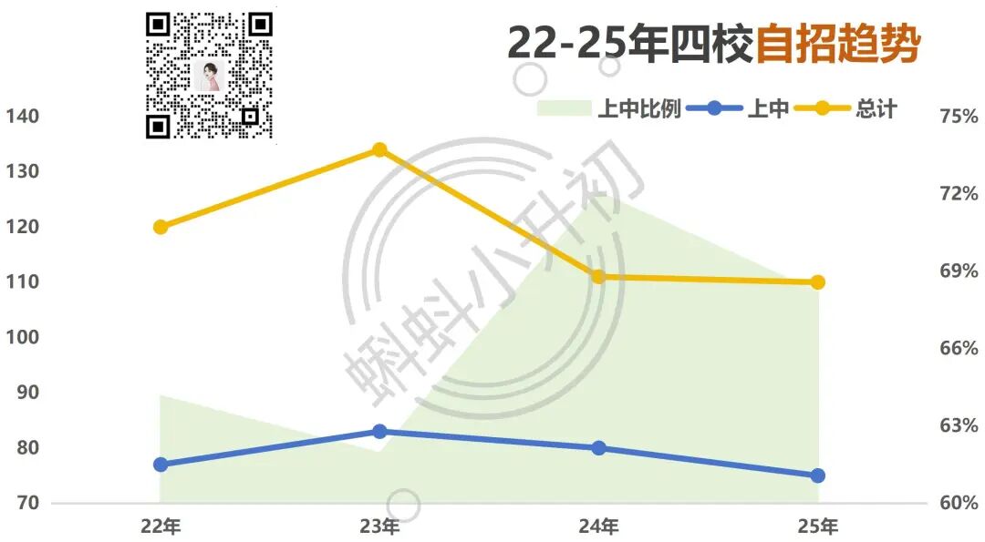 摇号后,一哥中考成绩并未受到影响。 公民同招落地后,民办学校“掐尖”不再摆上台面,生源下滑似乎成了默认的趋势。但“禾佳教育联盟”的核心学校似乎并未受到影响。 从四校自招数据来看,华育的核心竞争力未受影响。 作为华育学生,上中是很多人的目标,上中对7、8班的选拔从初二就开始关注。初三一模前会签掉大部分学生,平行班最顶尖的30-50人能获得上中自招考试名额。 其他四校,华二更青睐物理强的学生,主要关注7、8班;复附会组织年级前50的考试,不区分班级。 摇号后H7、H8仍旧是四校自招主力,每年自招四校人数约有80%来自这两个班级。 24年四校自招大部分在H7、H8,平行班的四校名额约占1/4。到了25年,H7、H8依然是四校自招的主力,有85%的来自这两个班级。 旧政时期H7、H8学生还是有不少去四分、七宝、南模的,新政以后只有一个同学今年自招去了南模。 两年到校加权均分,分别是678.3和676.2,取677作为标准线。 每年名额到校占当年实际参加中考人数11%左右。 四年前招生计划总数为320人。其中统招288人是公布了录取名单的, 在公示的288人中,有40人未参加中考。可能是留级、转学、出国的。 到校批次是在华育已经有大量自招和到区录取后,25年到校分数线复附徐汇、南模和统一批接近,从位育开始出现了较大的分差。 市二和南洋的到校分数线是低于平行分数线超15分且在677之下的(677为徐汇区25年市重平行录取最低分)。 摇号像一面 “放大镜”,华育稳住了头部和整体实力;兰生的自招优势虽然在收缩,但 “亲儿子” 的身份还在;上宝则借着趋势实现了突围,打破了“衰落论”。 后续这三校的走势,恐怕会越来越不一样。