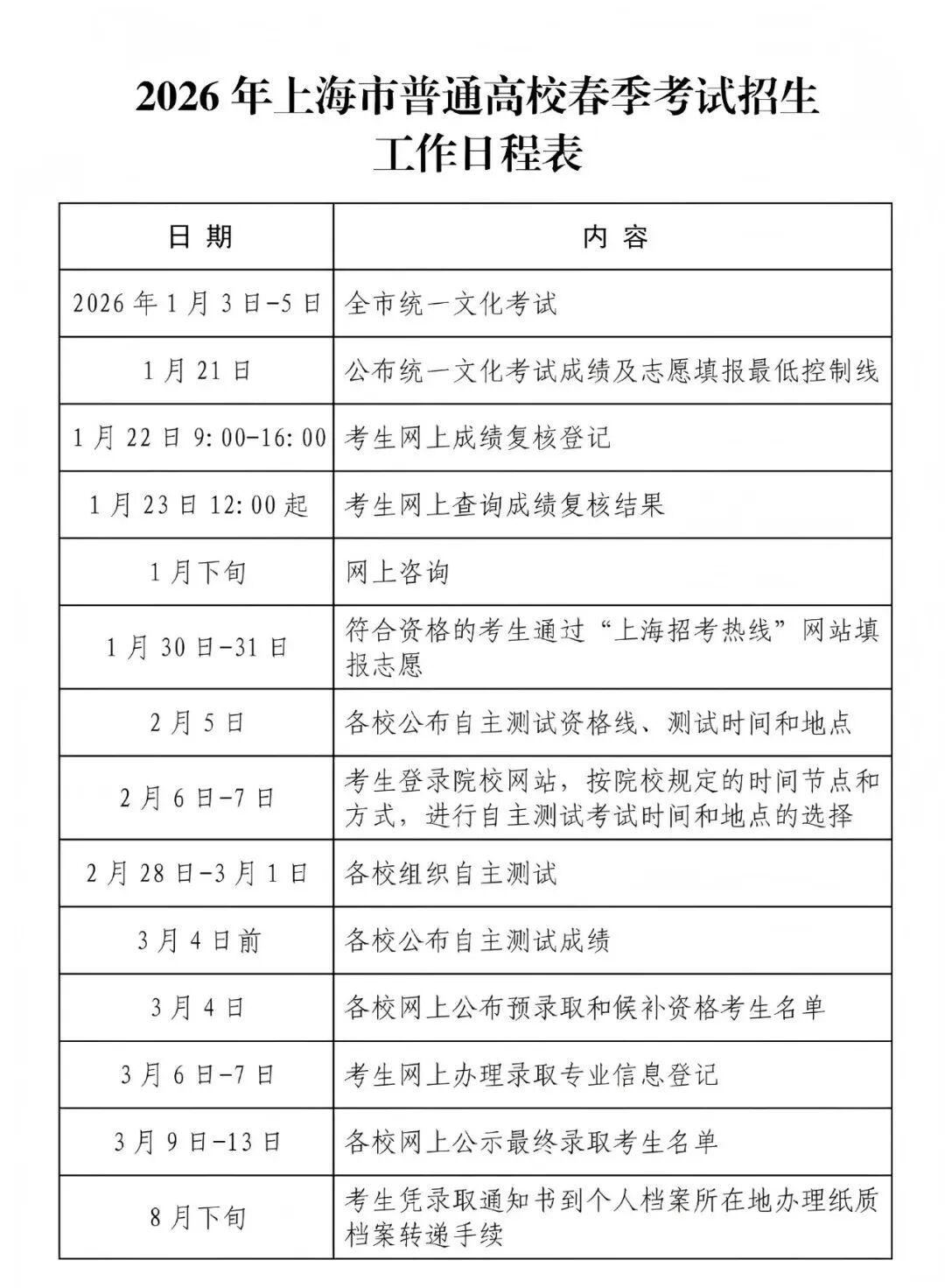 上海春考时间轴