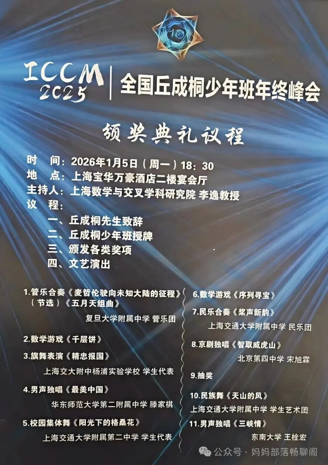 如果大家一直看我公众号就知道,去年第一届丘少示范班在北京遭遇困难时也由上海的华二附中雪中送炭临时接手。华二接手这样大的事情,不太可能仅仅由华二自己就可以敲定,也体现了上海对基础数学和丘老的支持。