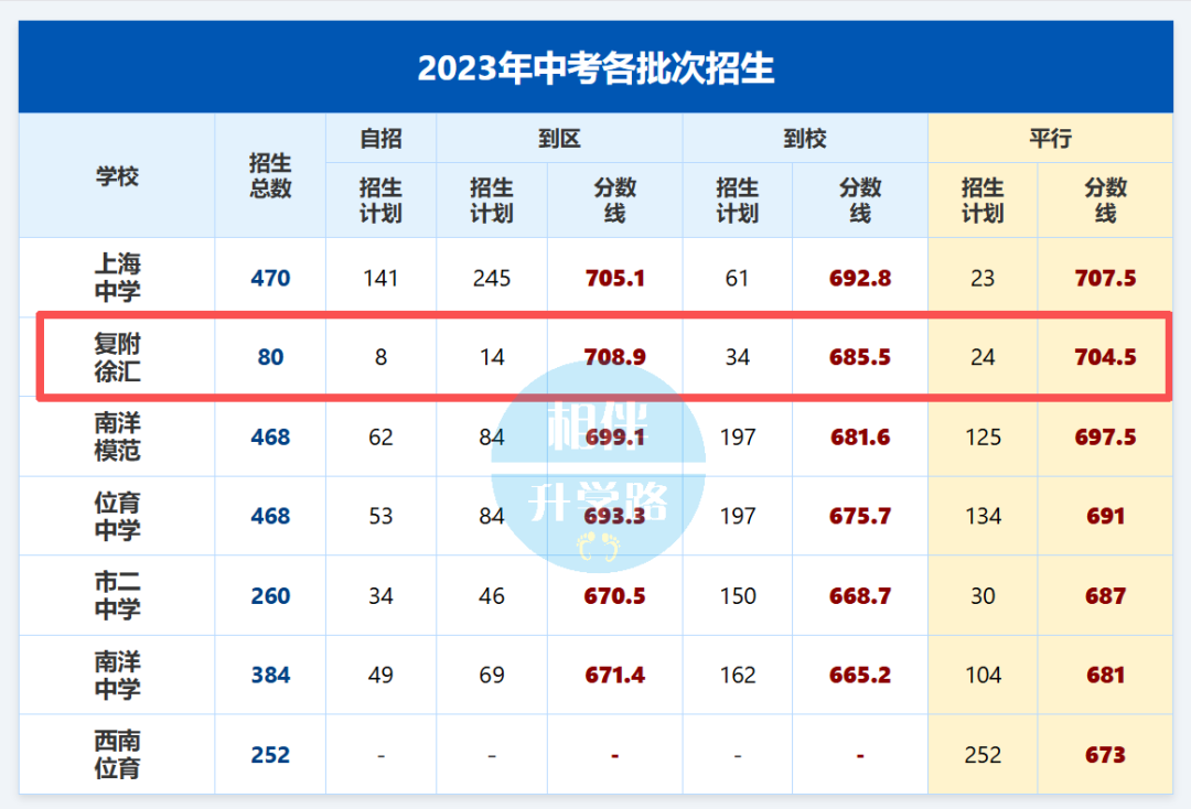 作为复附在徐汇的“亲儿子”,它仅招80人,走的是“小而精”的路线。看当年的数据:到区录取均分708.9分,甚至超过了上中近4分;平行志愿分数线704.5分,仅次于上中,比南模高了整整7分!