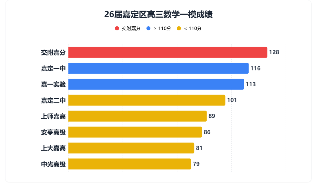 交附嘉定在嘉定区的地位依然不可撼动,数学均分高出嘉定一中整整12分。这种单科的统治级表现,足以保证其在大盘上的绝对优势。