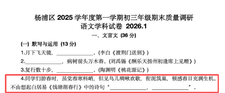 2026首战!杨浦一模打头阵:语文难出天际,作文直接变脸?