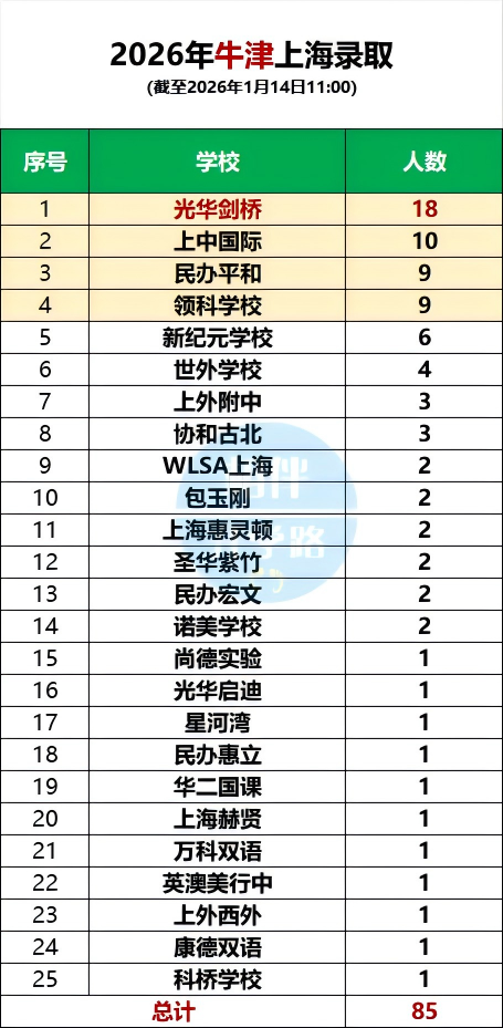 今年的牛津录取,上海再次霸榜全国!光剑稳坐沪上头把交椅,更有黑马校杀出重围。话不多说,我们直接来看数据。