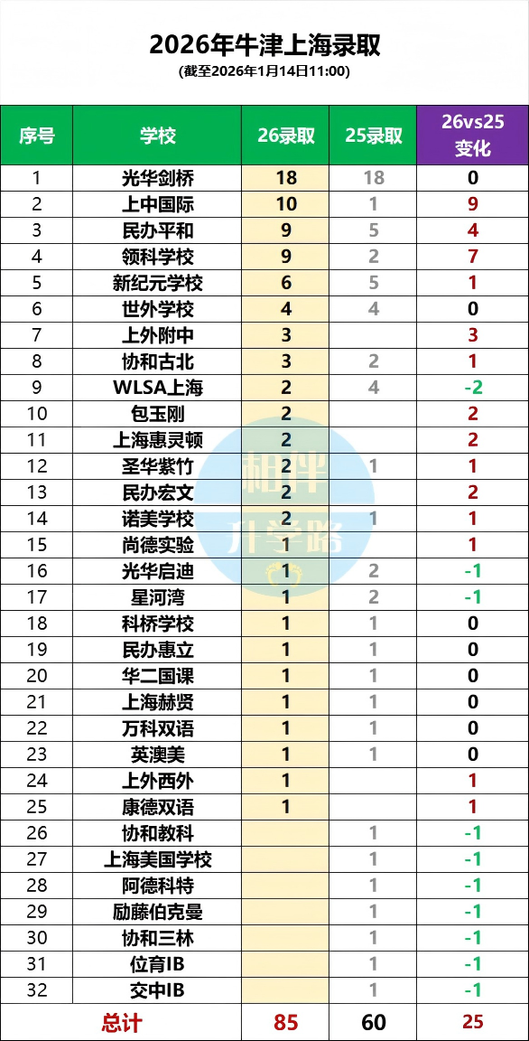 2026年科桥作为学校获取牛津录取1枚,渊学通作为机构获取牛津录取15枚。清晰而诚实,特别点赞。科桥体量不大,百个毕业生不到,就能出来1个牛津,后续还有剑桥录取,成绩完全不输于大体量学校,说明学校教学能力很强。相信科桥会越来越好。