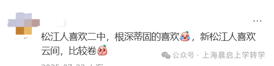 又比如松江一模之争中的上外云间和华二松江打得火热,不少观望的家长犹豫选哪个学校时候,这个时候,一些松江家长默默地来了一句:“当然选松江二中!”