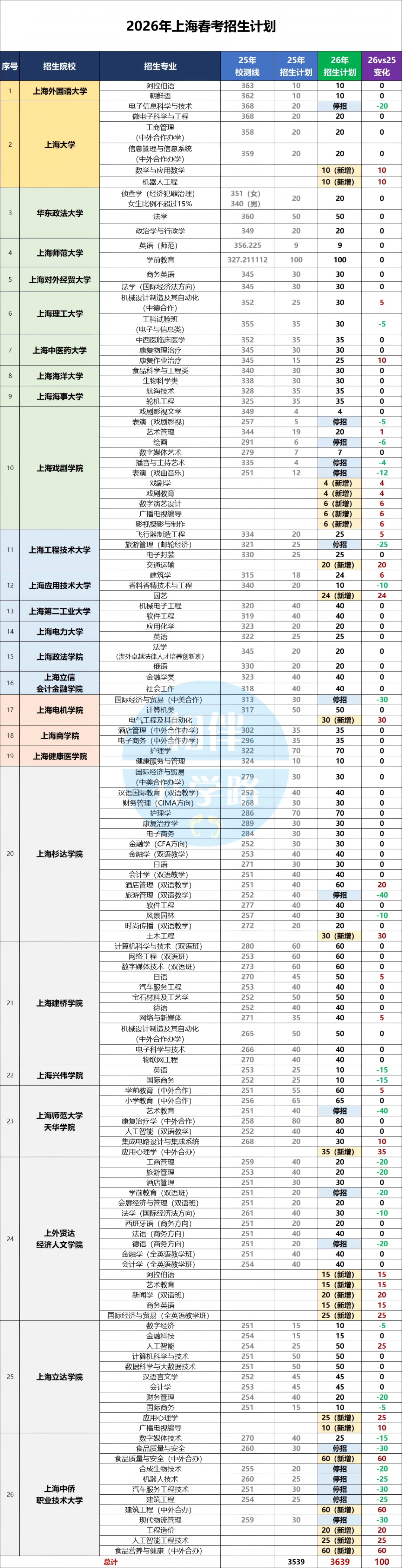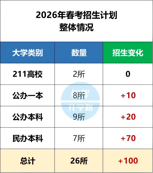 今年还是有26所高校,116个专业参与春考招生。今年计划招生共3639人,相比起3539人,扩招100人。