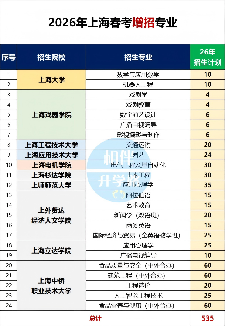 2)上戏、上工程、应技大:艺术类技术类专业,以及交通运输、园艺等应用型专业在增加。