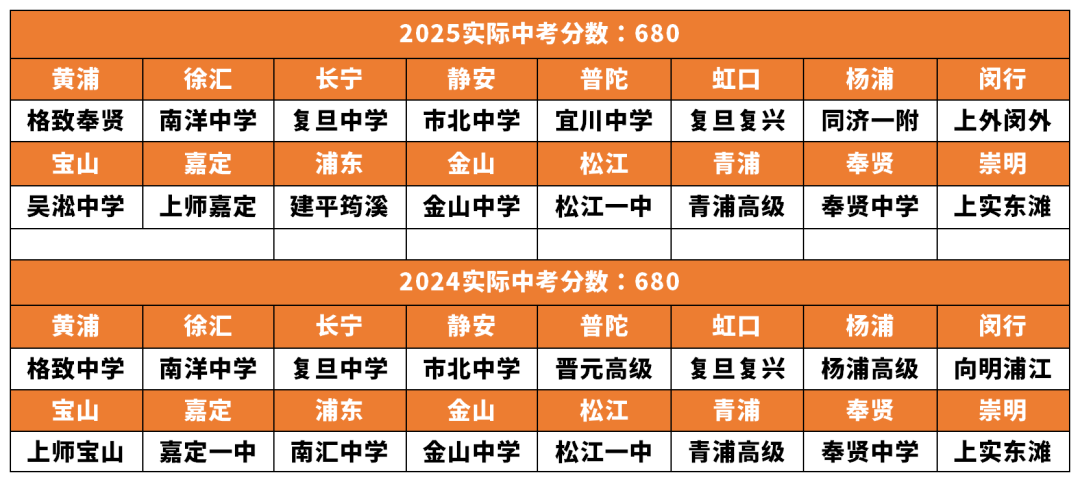 2025年中考680分,在宝山只能进吴淞中学,在浦东是建平筠溪,而在2024年的黄浦却能进格致中学,属于市重点中学;