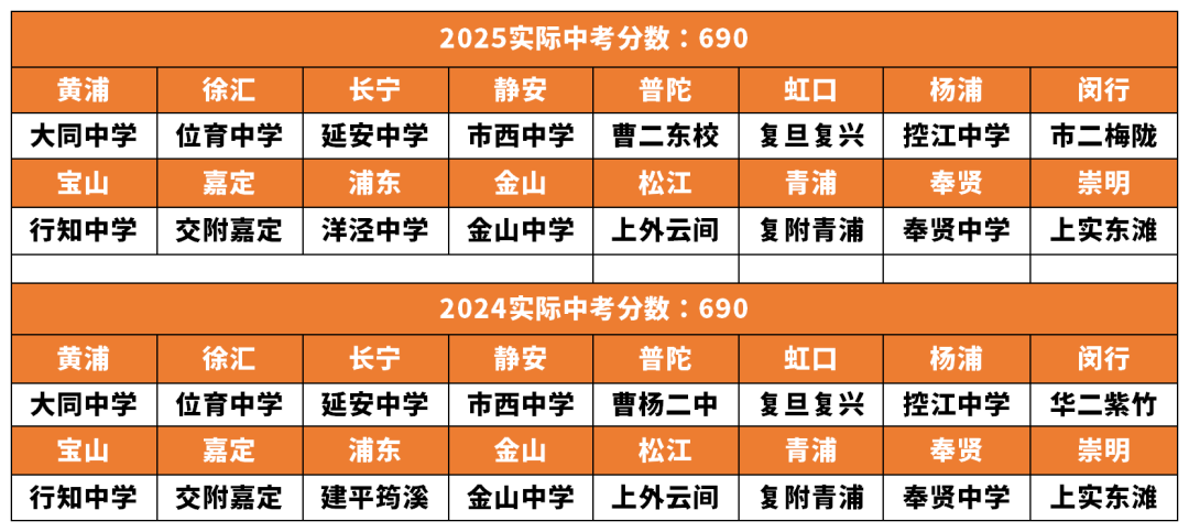 2025年690分在普陀只能进曹二东校,但在嘉定可以进四校分校的交附嘉定,在青浦能进复附青浦;