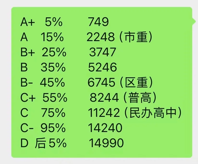 前45%→B:≥460.5+:这个分段的锚点是光明中学。