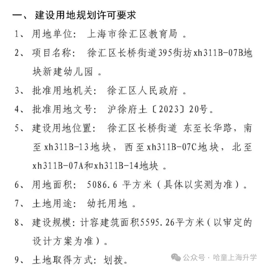 项目名称:徐汇区长桥街道395街坊xh311B-07B地块新建幼儿园