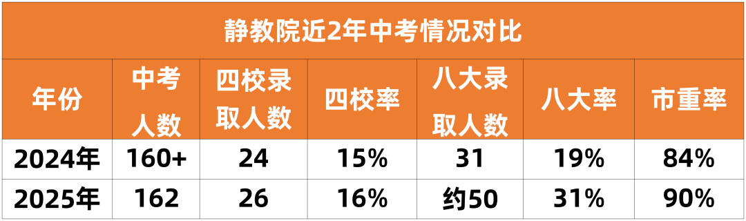 特色班型:拥有贯通市西高中的0班,面向一师附小、万小、市西小学对口选拔,以及数学进度超前的S班,入学后多轮考试选拔。其理科班实力强劲,丝毫不逊色于静教院的平行班。 升学成绩:近两年整体中考水平稳步提升,2025年市西率19%,较24年提升7个百分点,市重率32%,略高于静安区28%的平均市重率。 静教院 静教院2025年中考表现也再创新高,162名考生中,四校录取26人,四校率16%,八大录取约50人,八大率31%,整体市重率高达90%;并且,2025年95%的学生成绩超过静安区中考平均分,基本实现全员保底区重点。