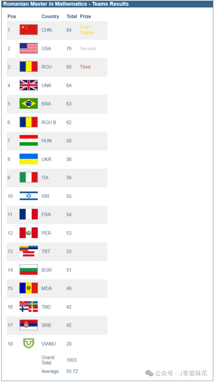 昨晚,2026罗马尼亚数学大师赛(RMM2026)比赛结果出炉,中国队3金2银1荣誉,获得团体第一。正当我们都沉浸在“中国在数竞上真的是...
