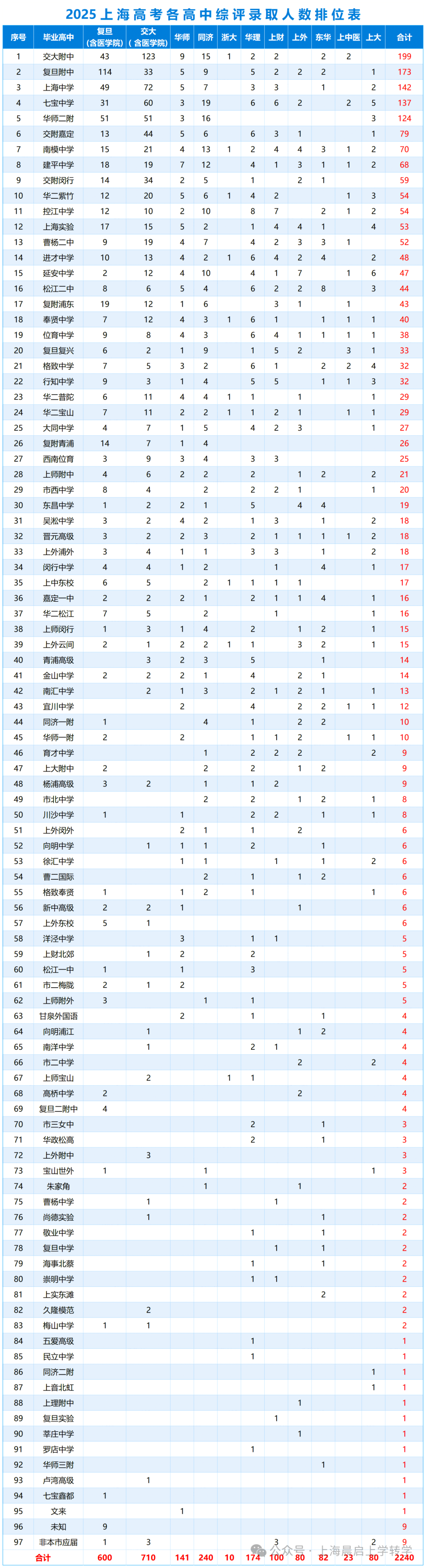 有家长该说了,我想让孩子以后走综评路线,那去哪所学校比较有优势呢,那就让我们看看2025年上海高考综评录取的生源高中一览表: