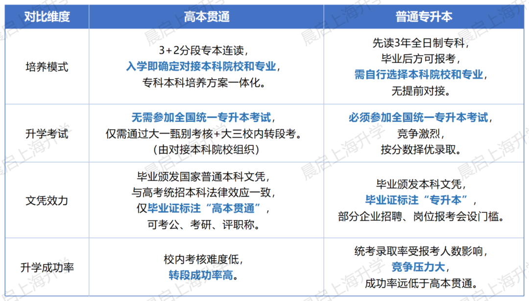 说到这,可能有家长会比较迷茫,这高本贯通和专升本有什么差别?