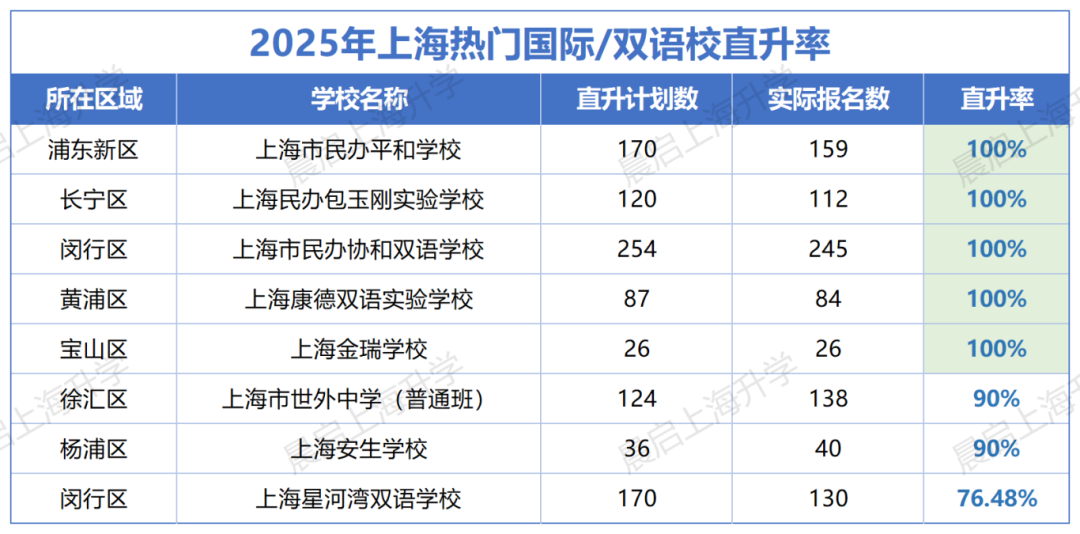 就去年,几所热门上海民办一贯制学校直升率的表现都比较优异: