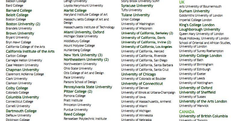 在学生取得offer的海外高等院校名单中,知名学府的大名也比比皆是,如常春藤盟校哥伦比亚大学、布朗大学、达特茅斯学院,著名文理学院巴纳德学院,最近风头正盛的加州系大学:伯克利、洛杉矶、欧文、戴维斯等分校,英国顶尖大学牛津大学,国王学院、伦敦大学学院等,还有加拿大、欧洲等各地世界知名大学。