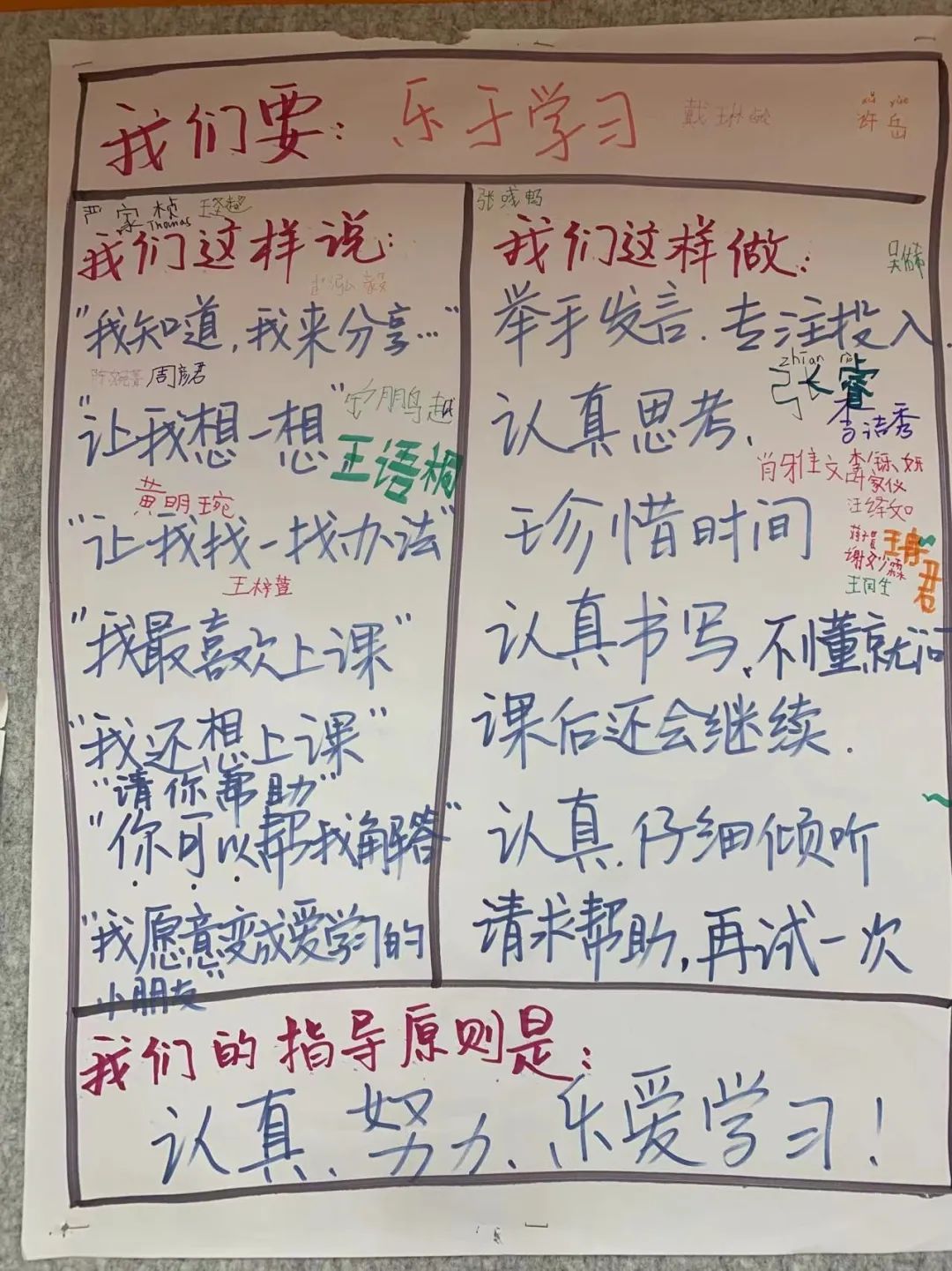 孩子们讨论出关于“学习”的行为指南