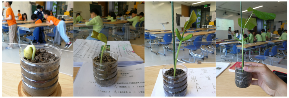 有一次,筑桥的语文组给每位小朋友发了一粒种子,让小朋友们带回家悉心培育,并观察种子生长形态的变化。小朋友们拍照记录下种子的生长过程,并用文字、绘画做记录。