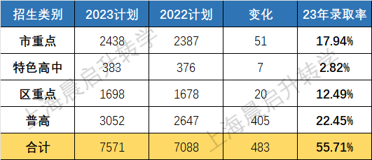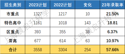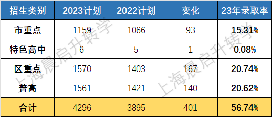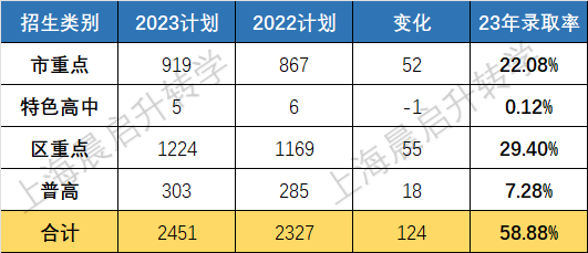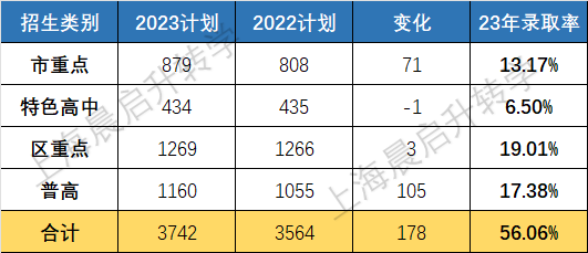 宝山23年中考计划招生人数增加了400多人,整体录取率是56%,市重和区重的录取率分别是17%和16%。
